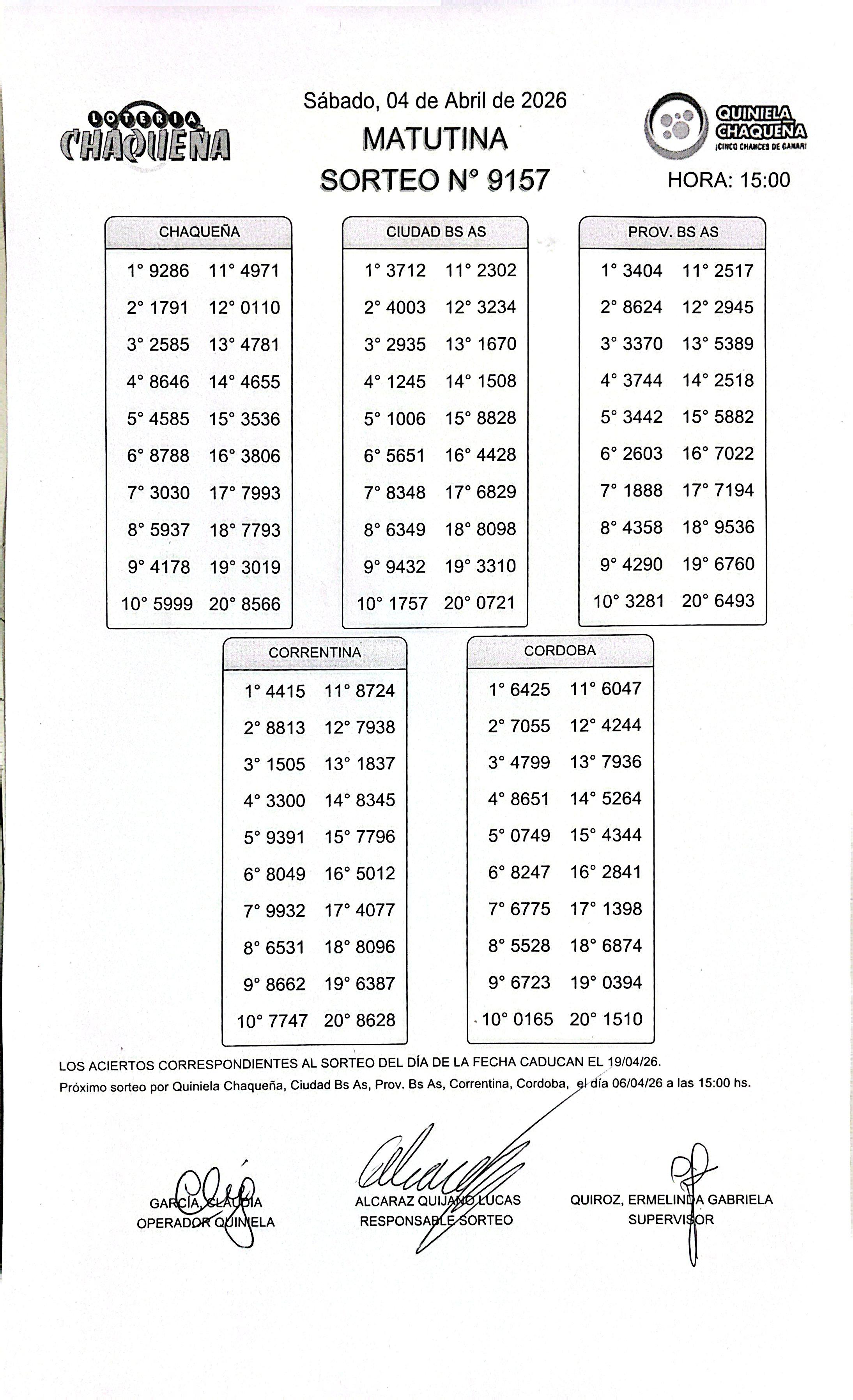- N° de Sorteo: 9157