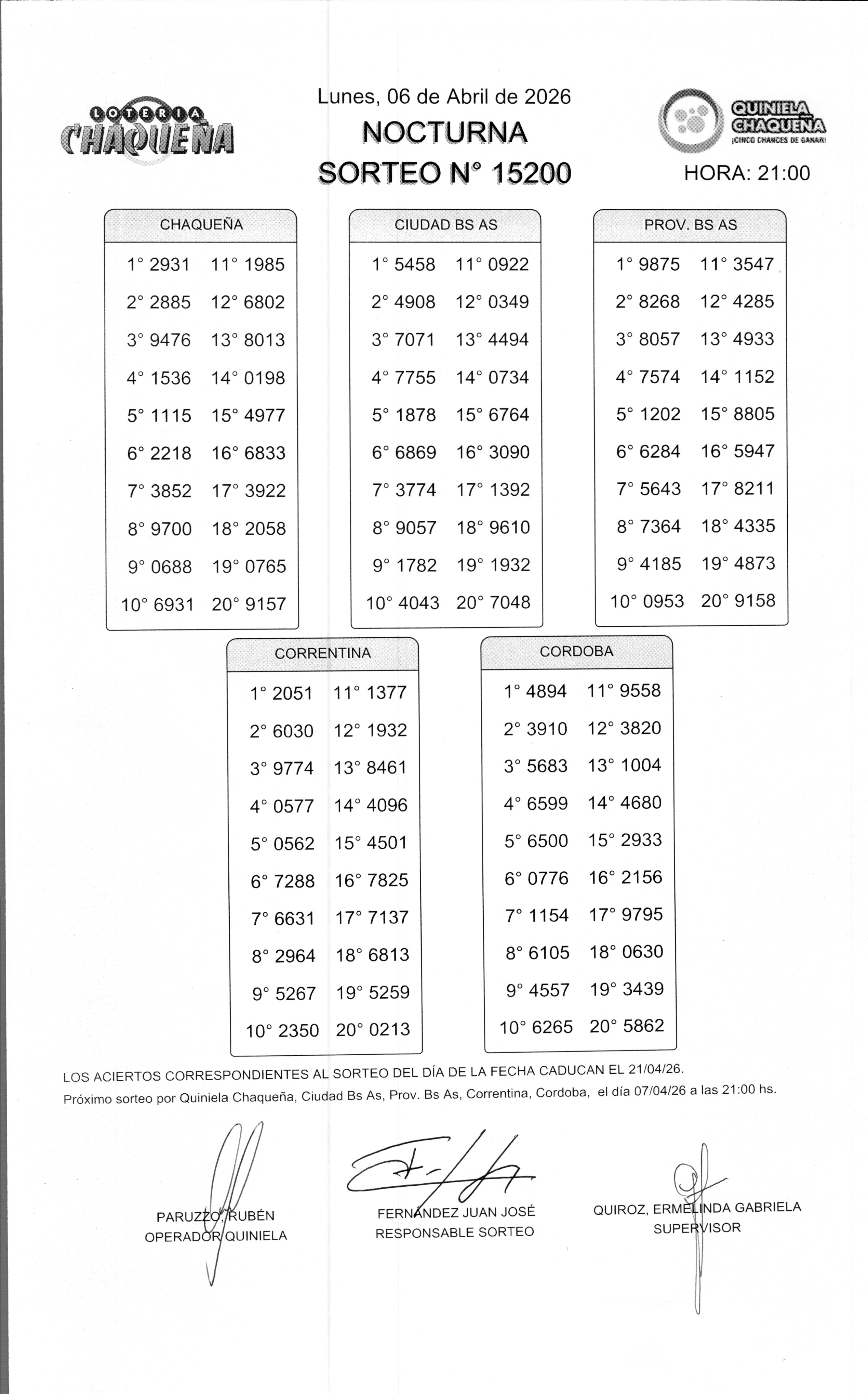 - N° de Sorteo: 15200