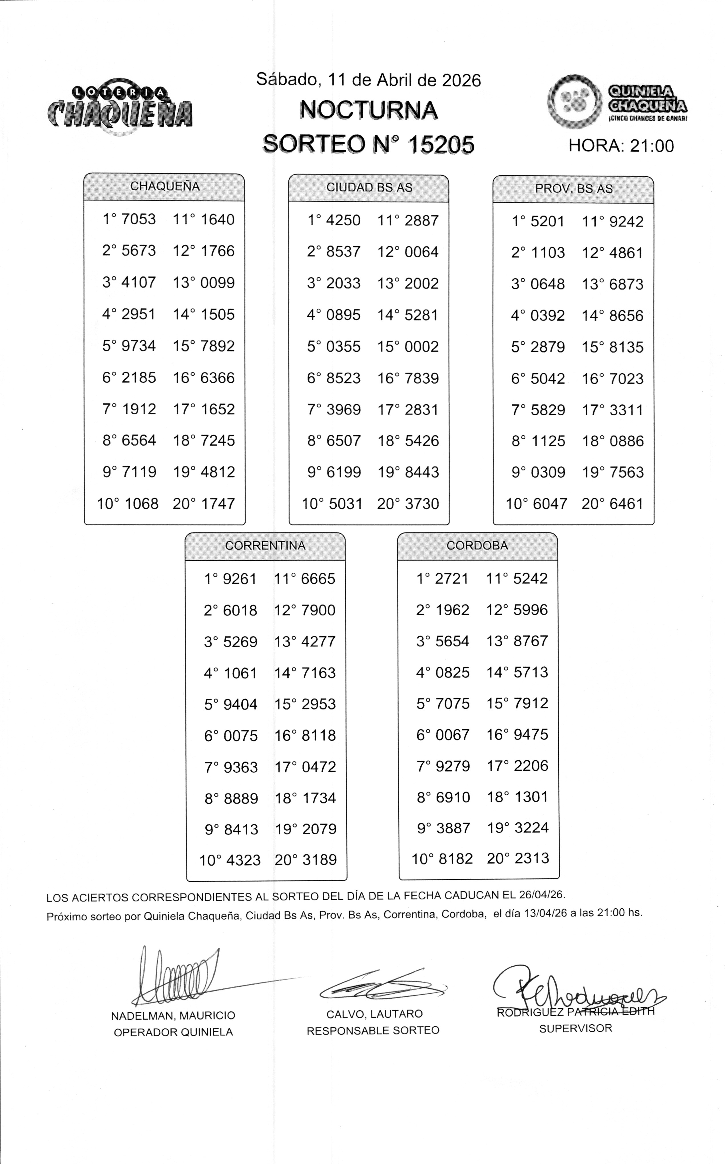 - N° de Sorteo: 15205