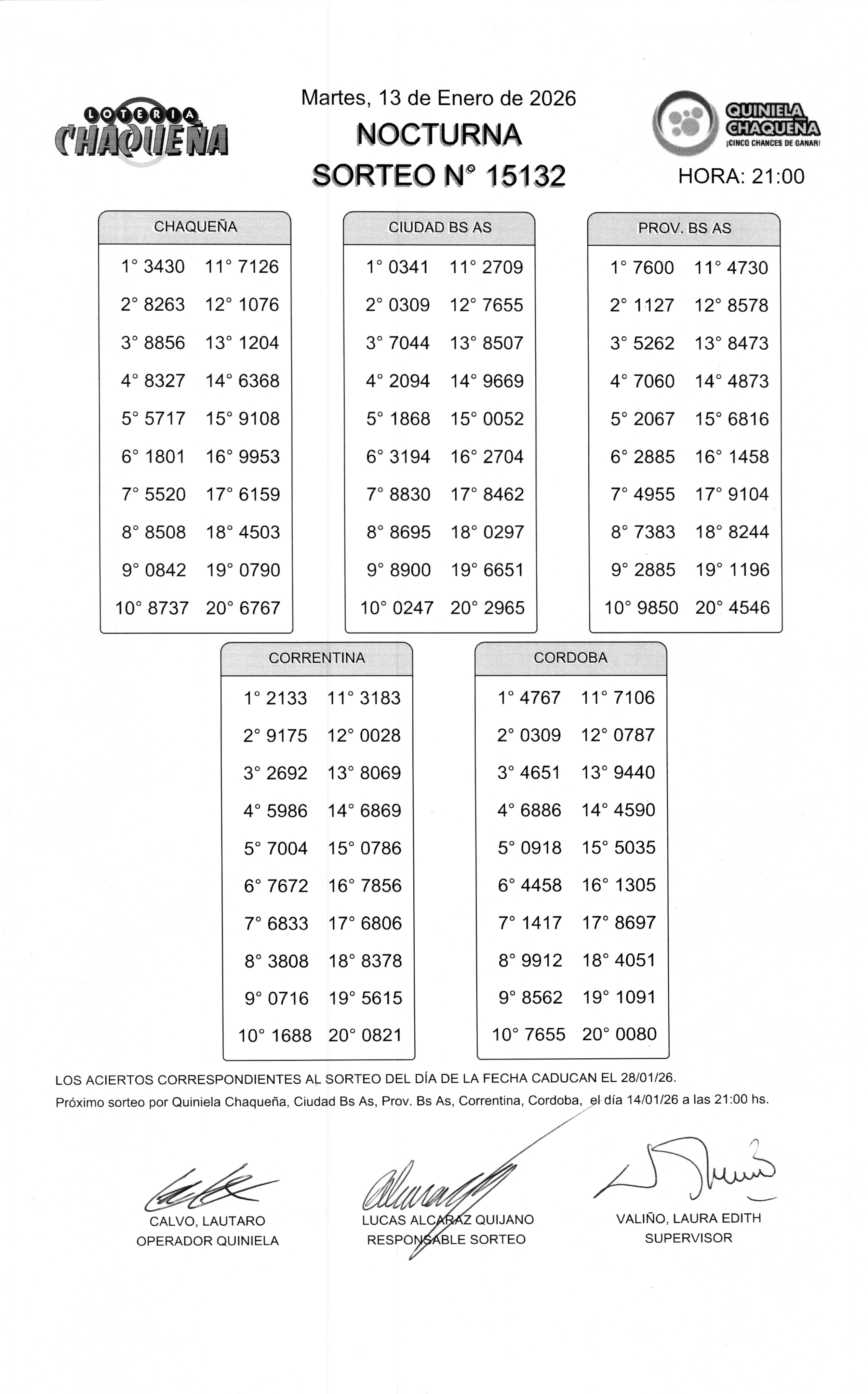 - N° de Sorteo: 15132