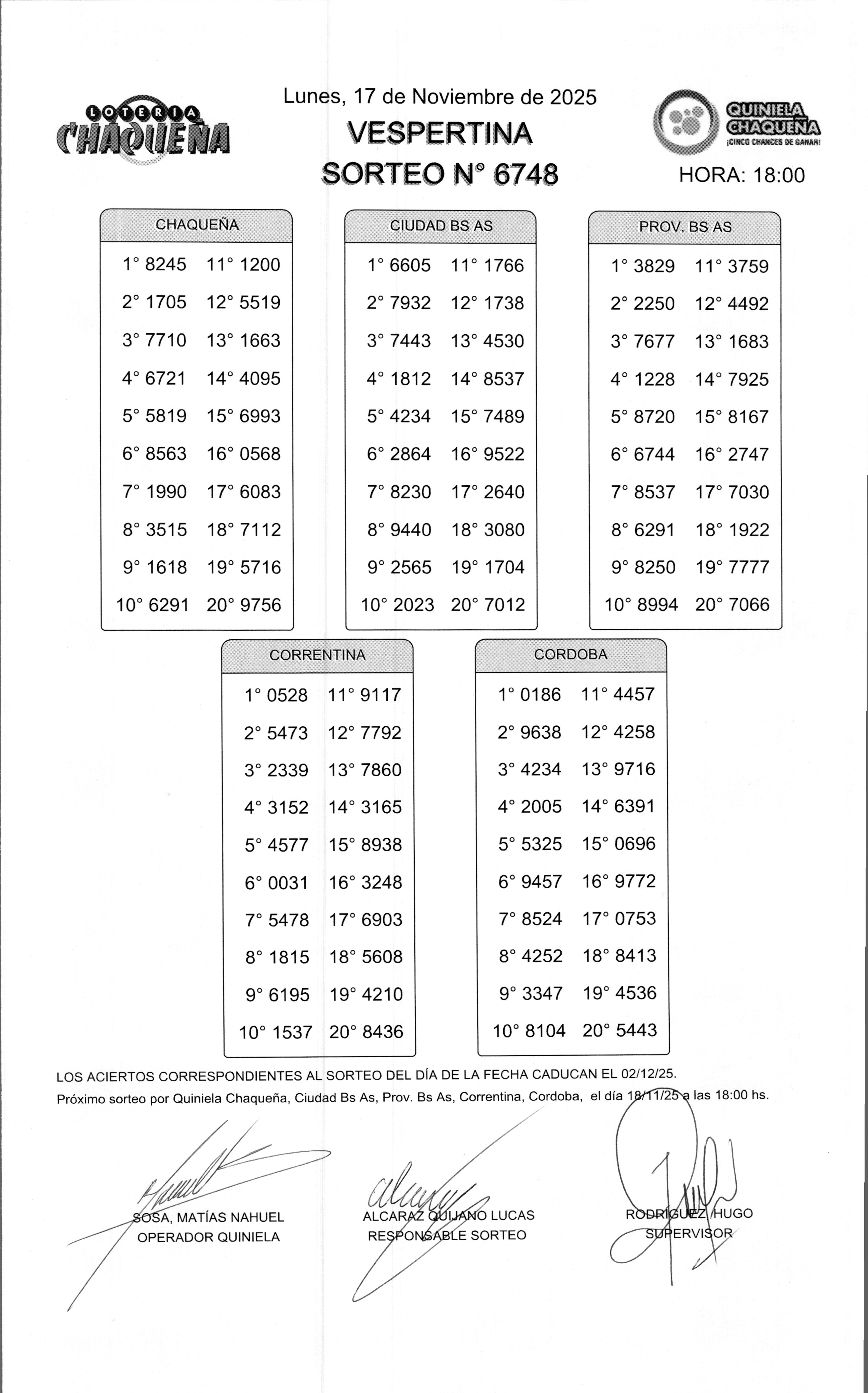 - N° de Sorteo: 6748