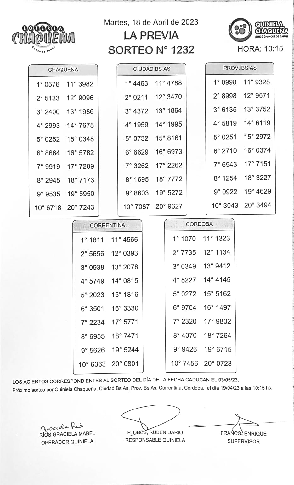 Nro de Sorteo: 1232