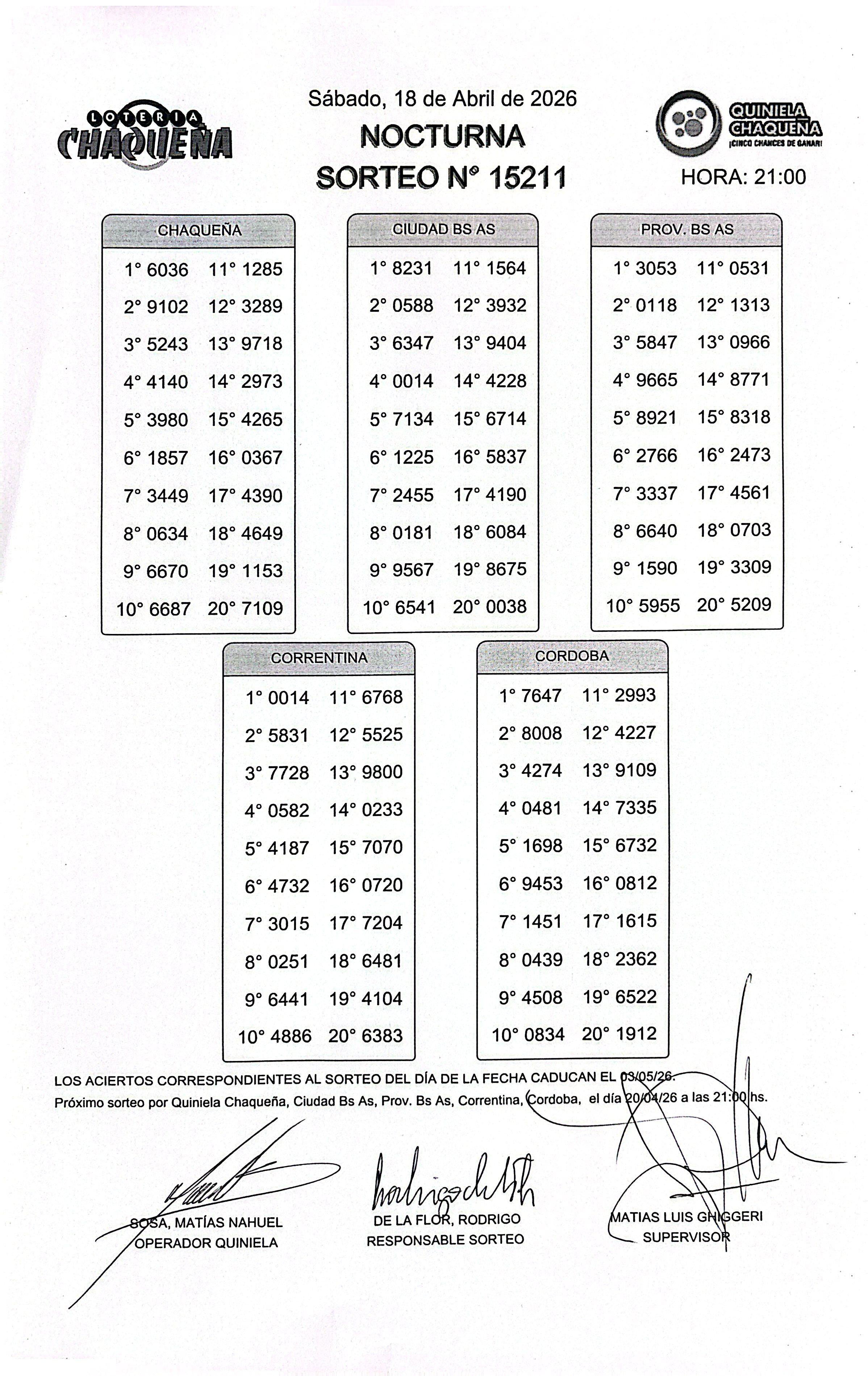 - N° de Sorteo: 15211