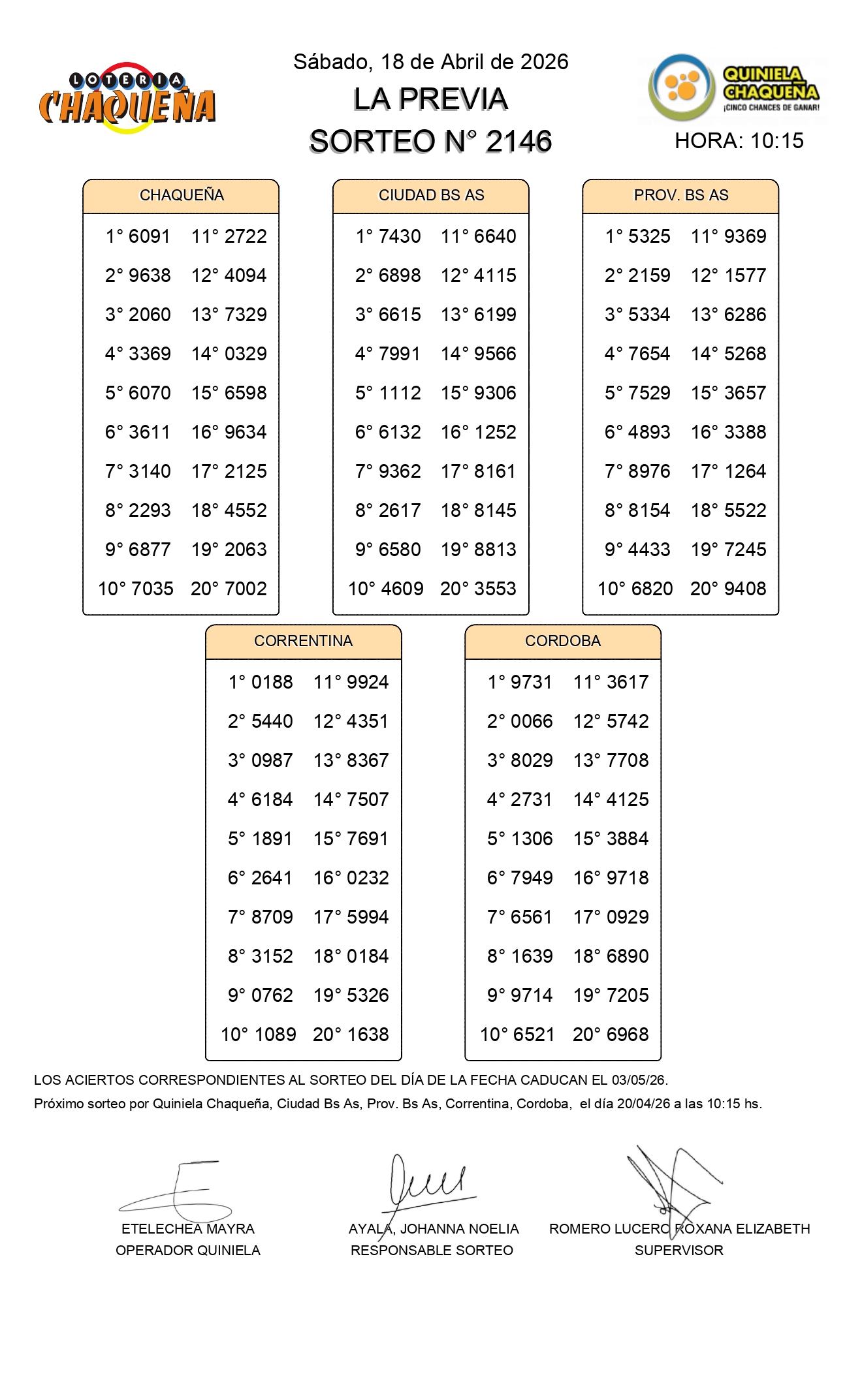 - N° de Sorteo: 2146