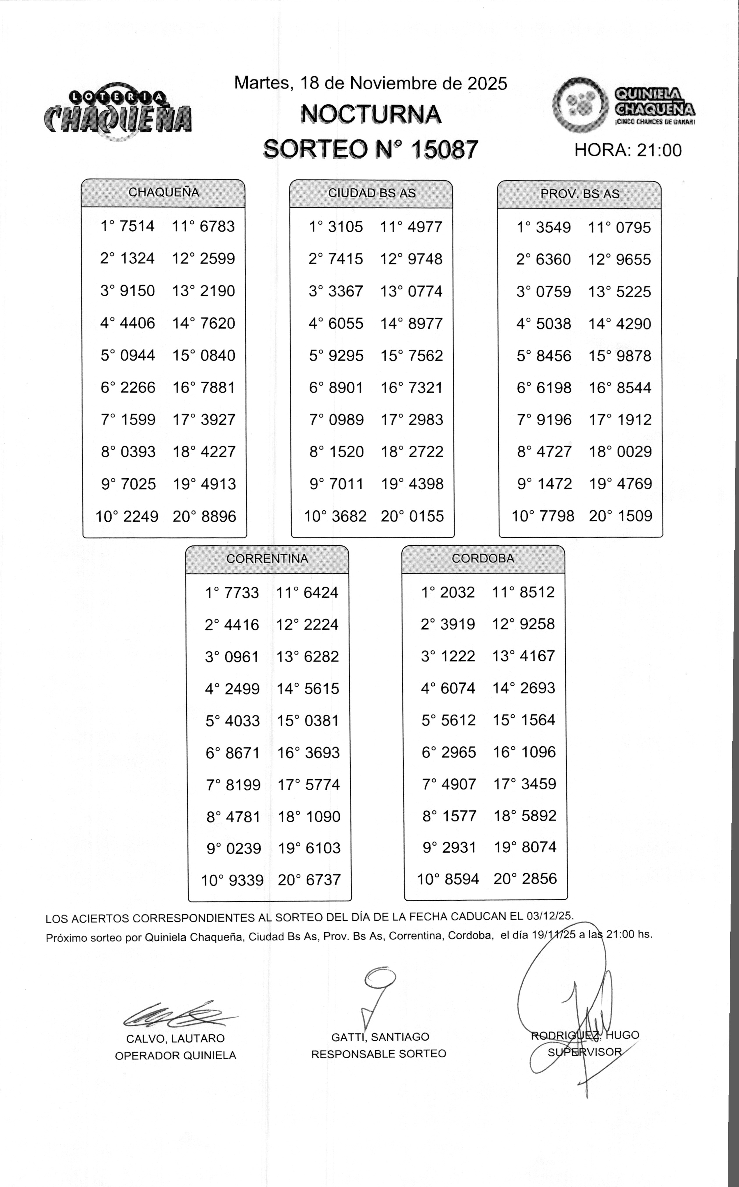 Nro de Sorteo: 15087