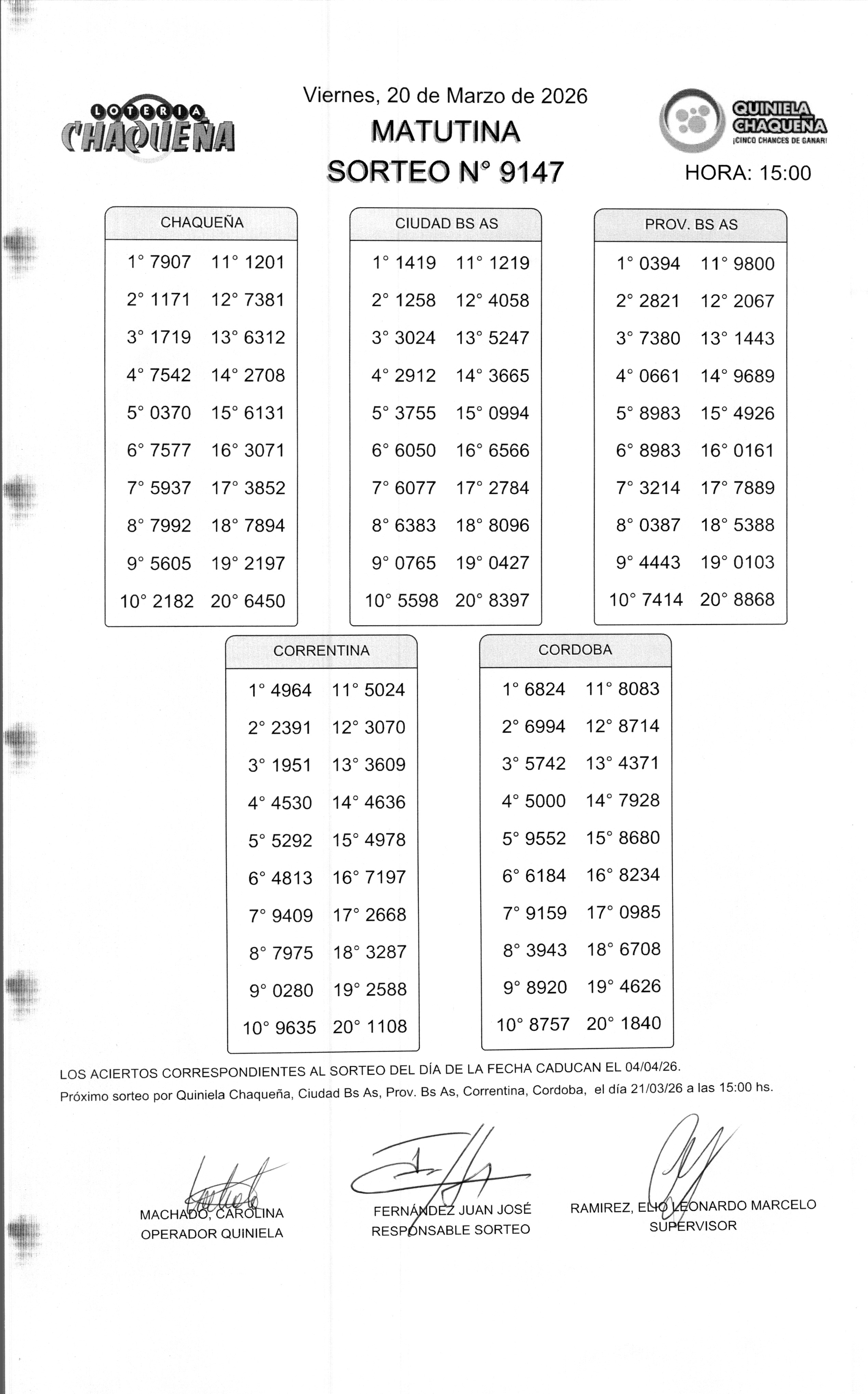 Nro de Sorteo: 9147