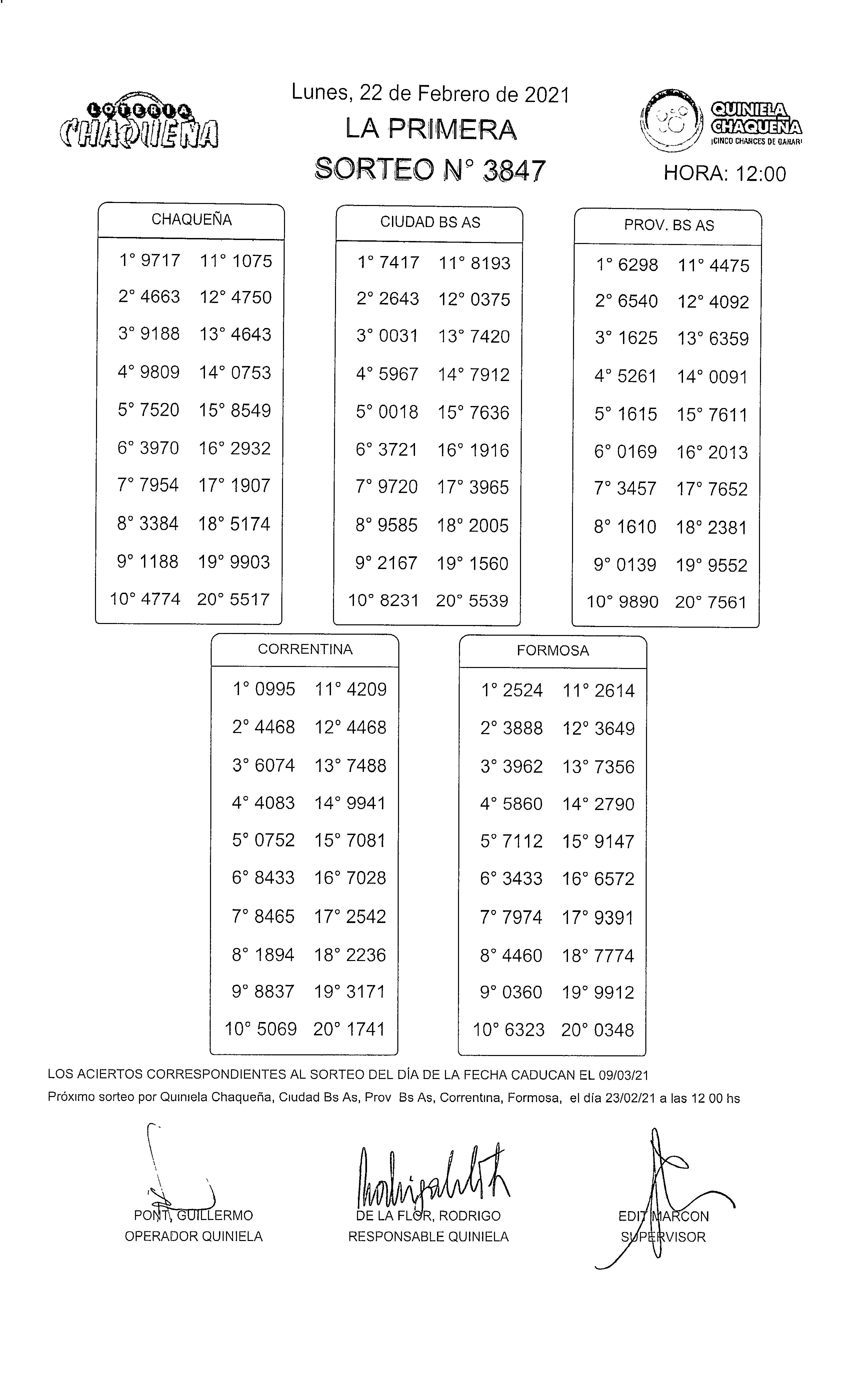 - N° de Sorteo: 3847