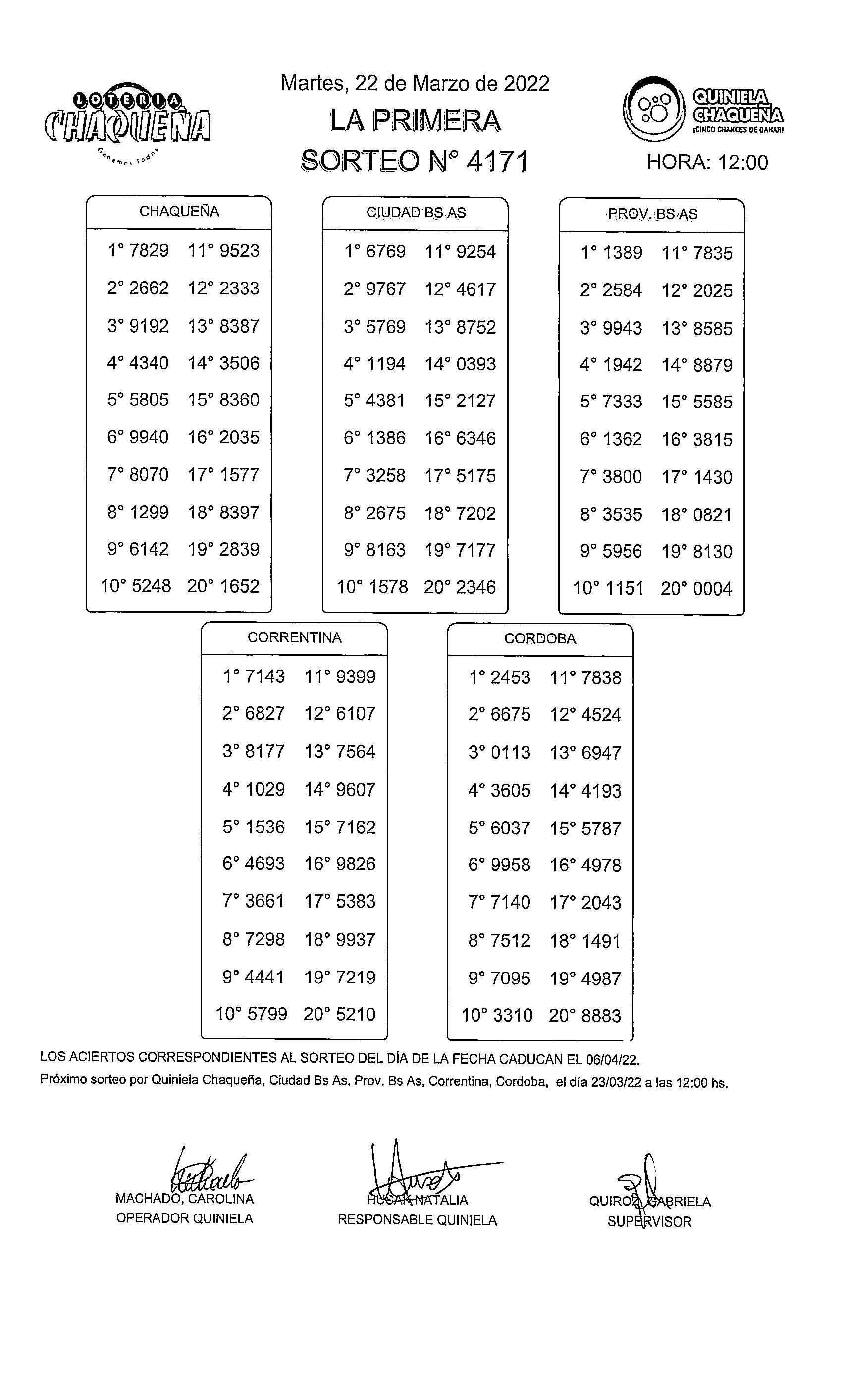 Nro de Sorteo: 4171