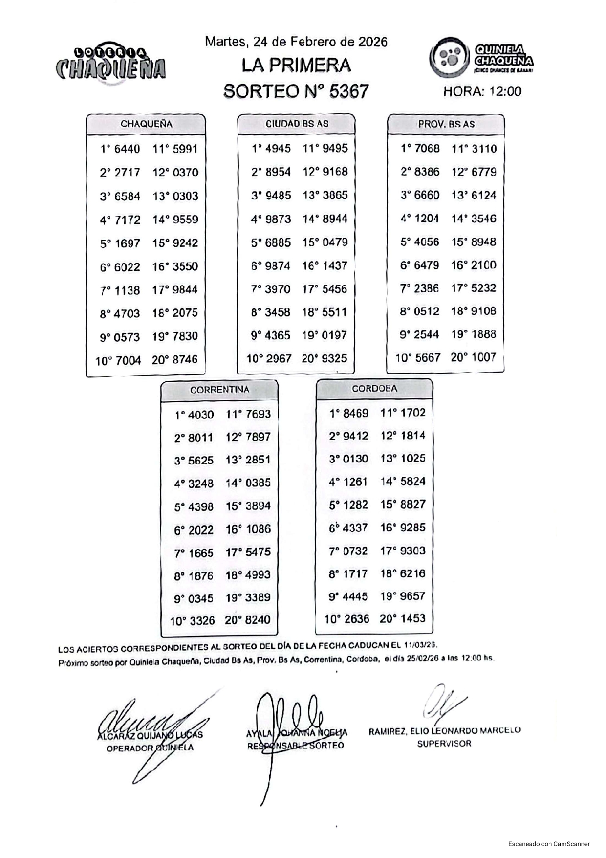 - N° de Sorteo: 5367