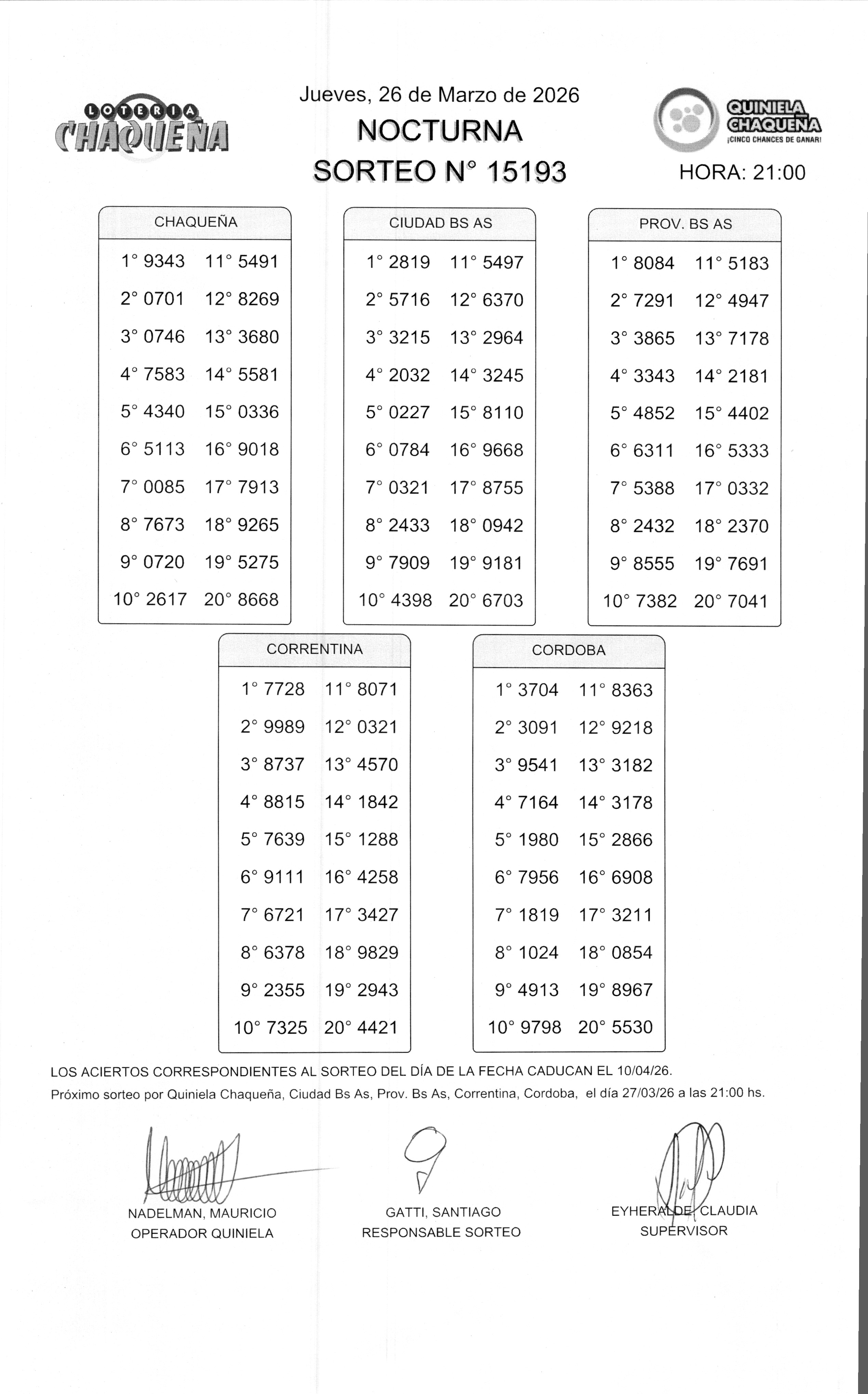 - N° de Sorteo: 15193