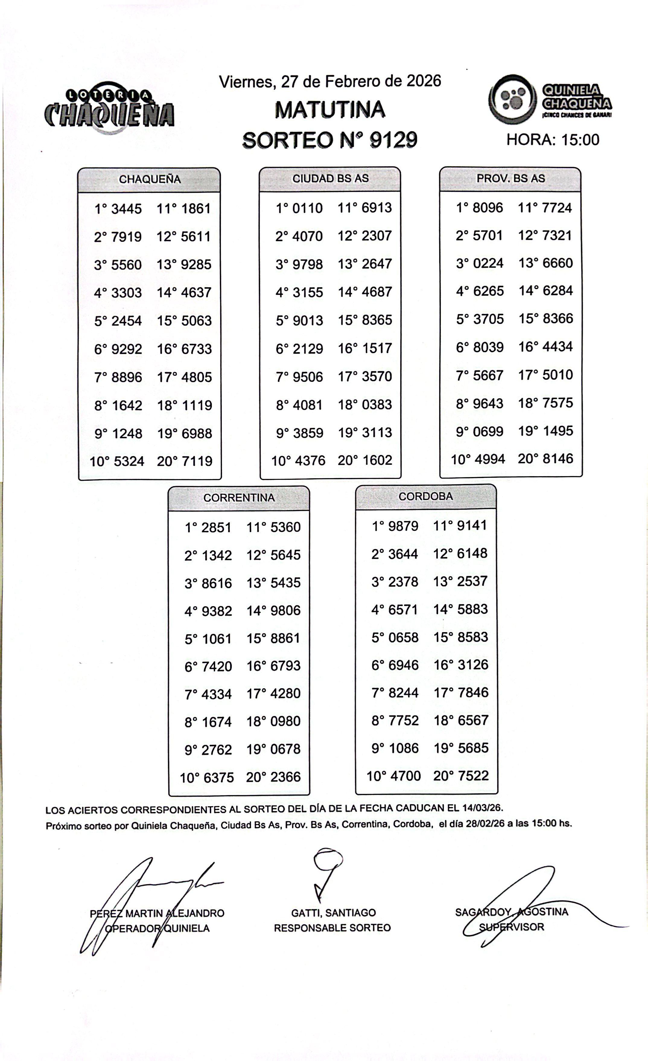 Nro de Sorteo: 9129