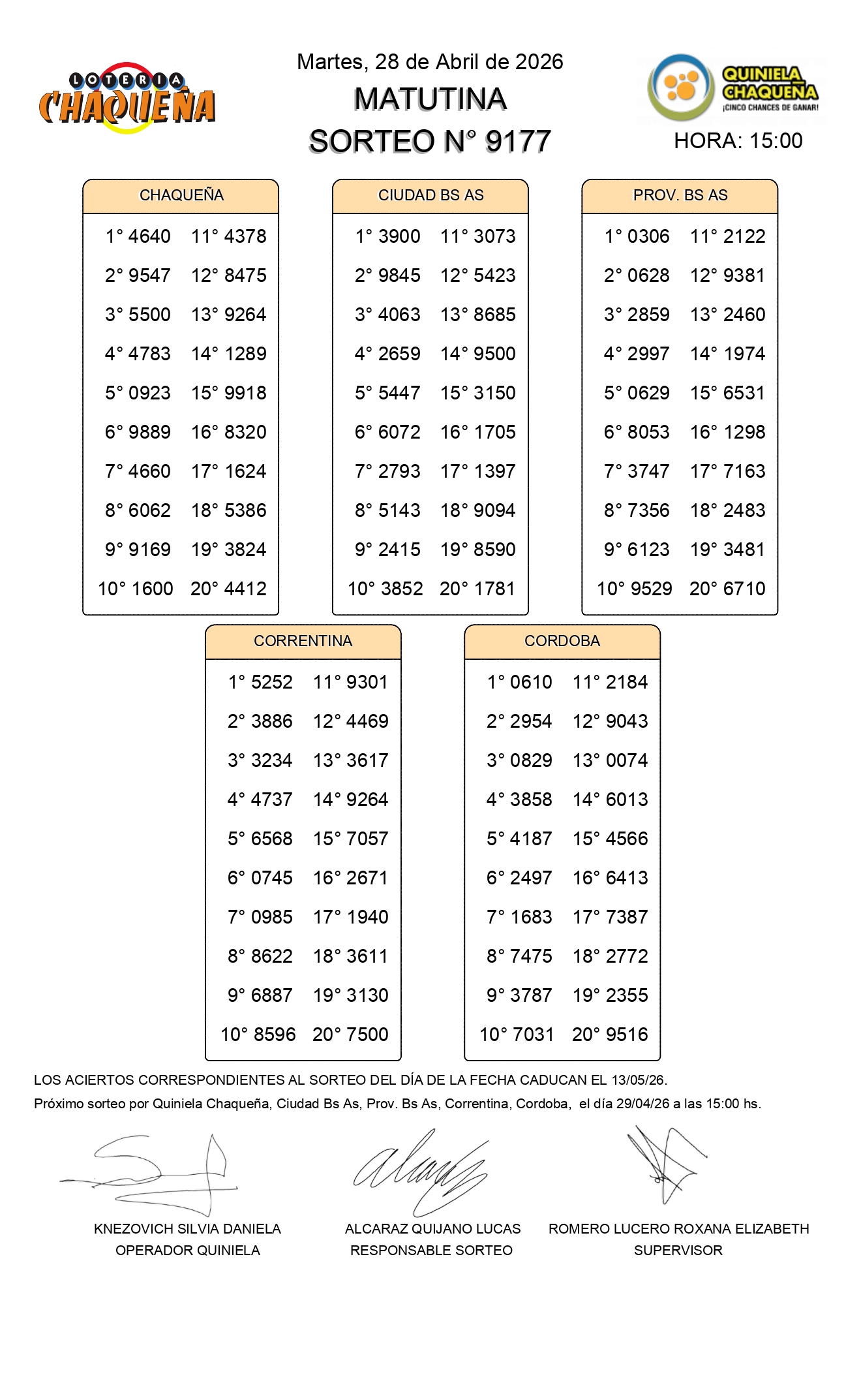 Nro de Sorteo: 9177