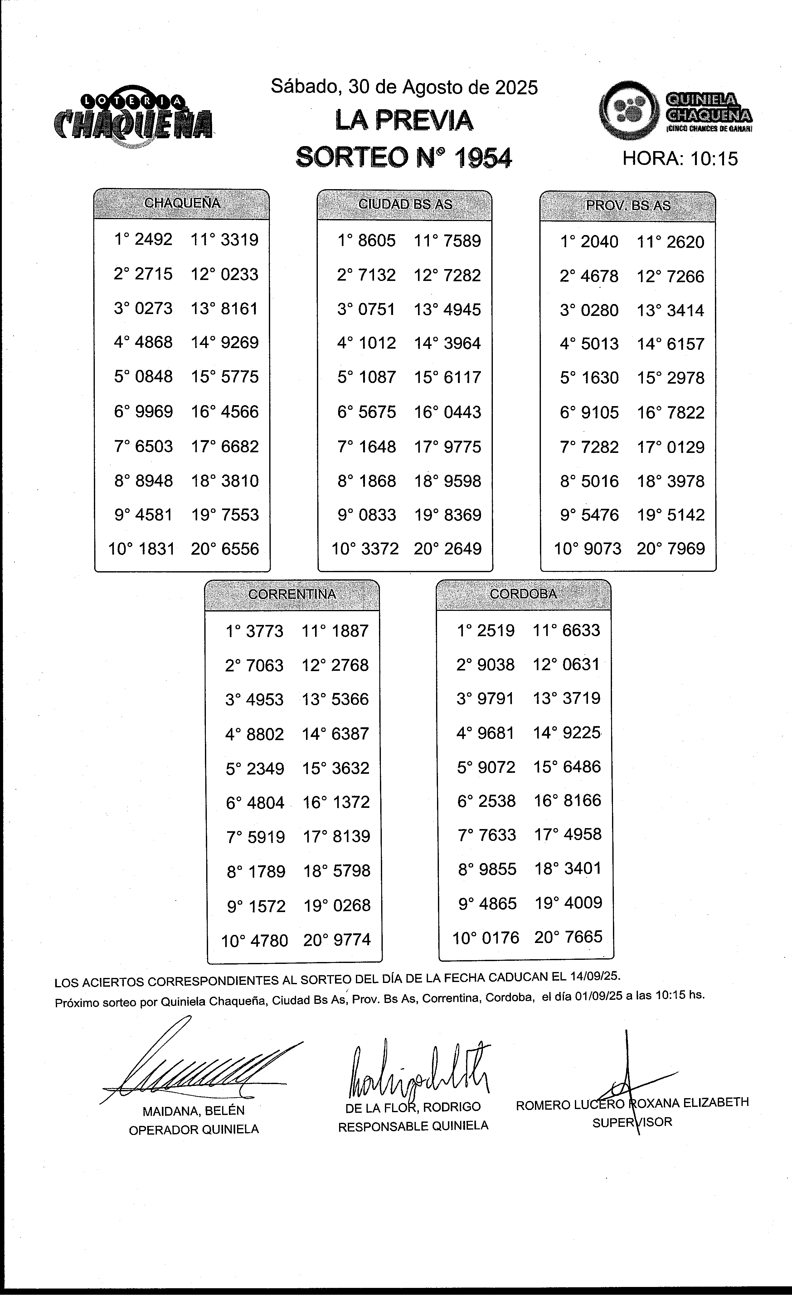 Nro de Sorteo: 1954