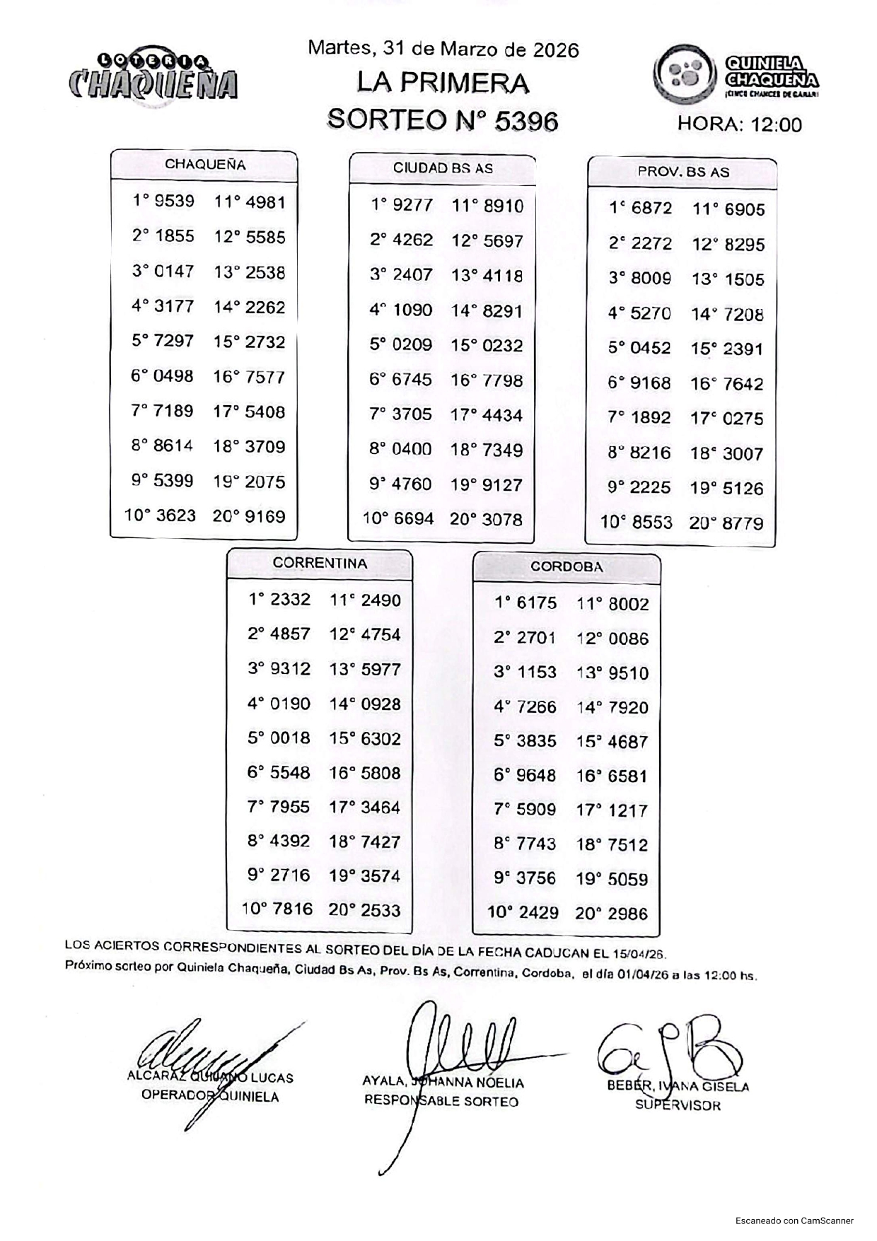 - N° de Sorteo: 5396